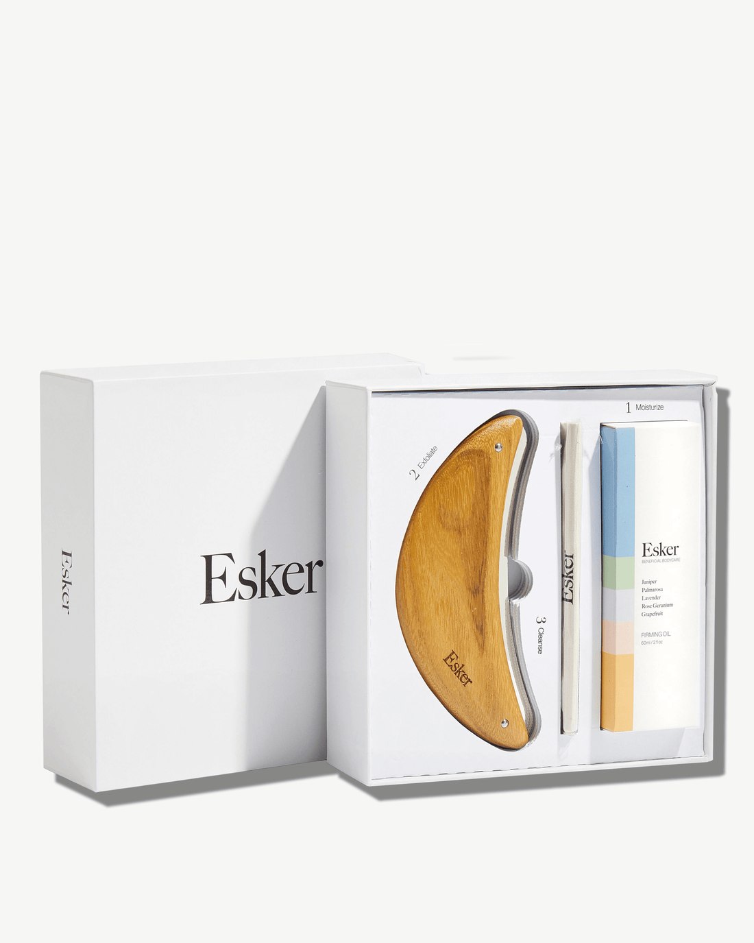 The Firming Body Plane Set pairs Esker Beauty's patent-pending exfoliation tool, the Body Plane, with their best-selling Firming Body Oil to support gentle exfoliation, remove buildup, and leave skin soft, smooth, and hydrated.